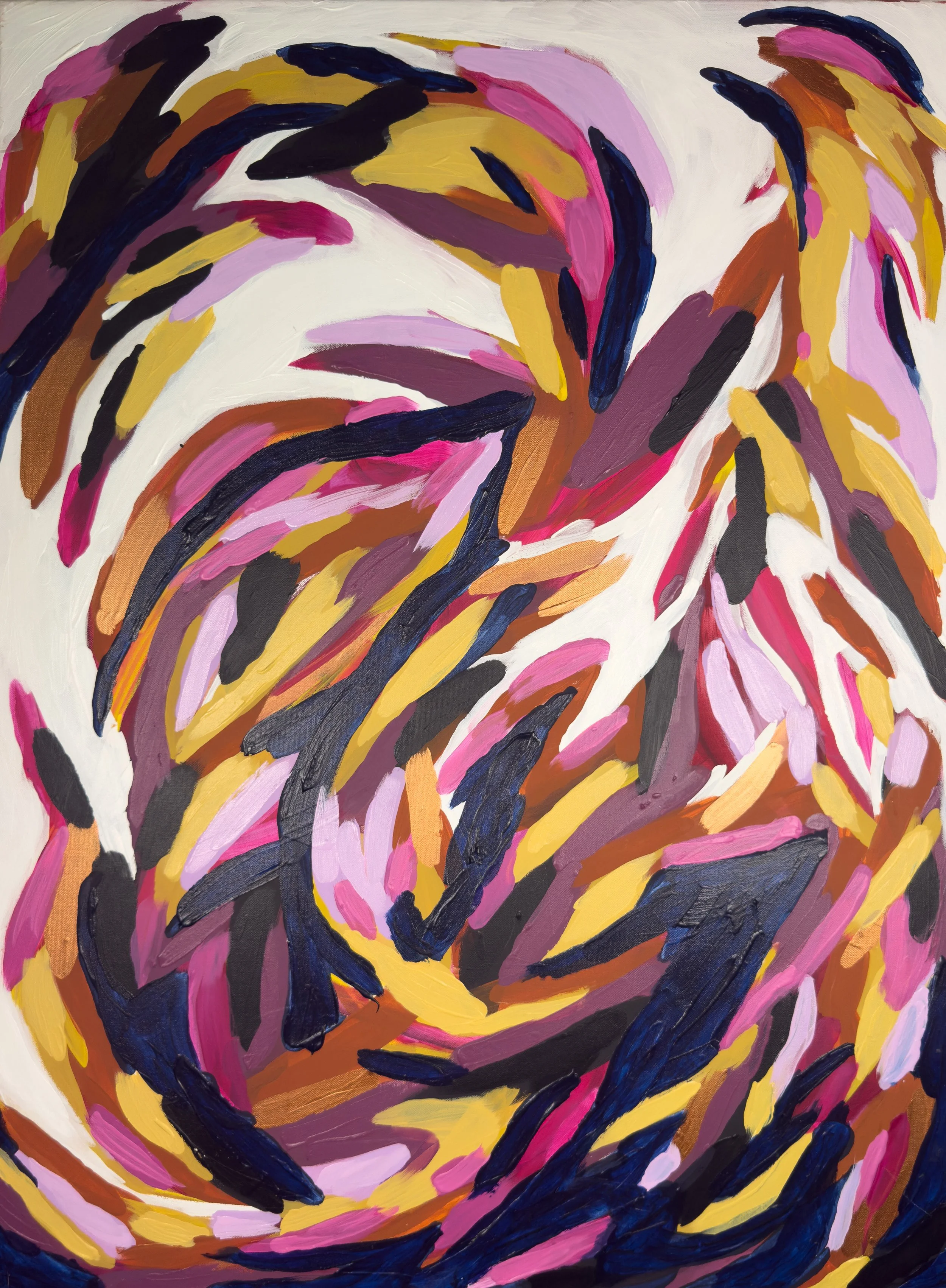 Jouer (“to play” in French) marks a transition point in my work where I have felt too serious and heavy in my work for a long time. Now is a time for remembering to loosen up, to explore, and to have fun and play. I am remembering to find joy in the process again, both in the painting and in my life. I listened to a lot of jazz while painting this piece, often on sunny days with sunlight beaming into the room. It will always remind me of the summer of 2025, and it is a meaningful start to a new chapter in my career.